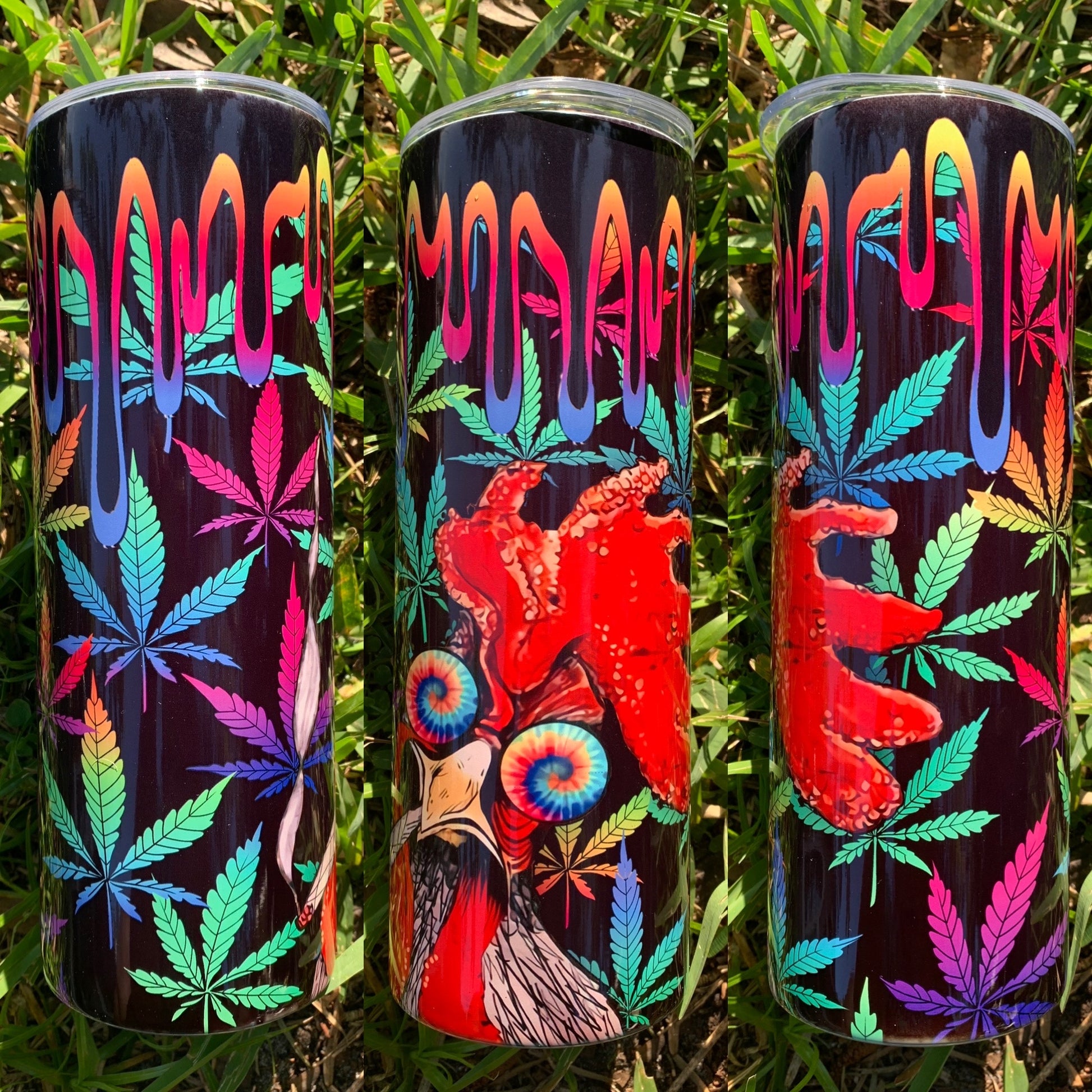 Premium 20oz Skinny Tumbler comes with a straw and has a glass, glitter, glow finish with sublimated graphic.